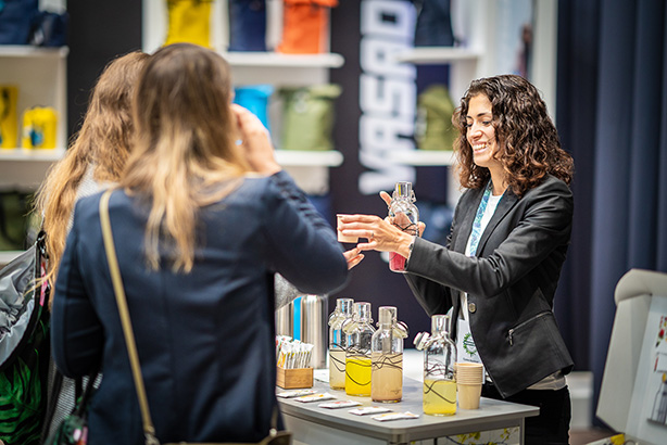 Auf der Bühne präsentierten diverse Speaker spannende Inhalte. So wurde die Cradle-to-Cradle Kreislaufwirtschaft, die neue zertifizierte Textilelinie LOOP® TEXTILES by Pandinavia und der CO2-Checker vorgestellt.