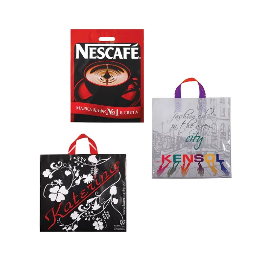 Praktische Taschen aus LDPE 80 g/m2, erhältlich mit Griffloch oder Trägern, verschiedene Grössen verfügbar (Preis auf Anfrage), Mindestbestellmenge 5000 Stück
