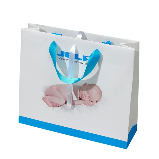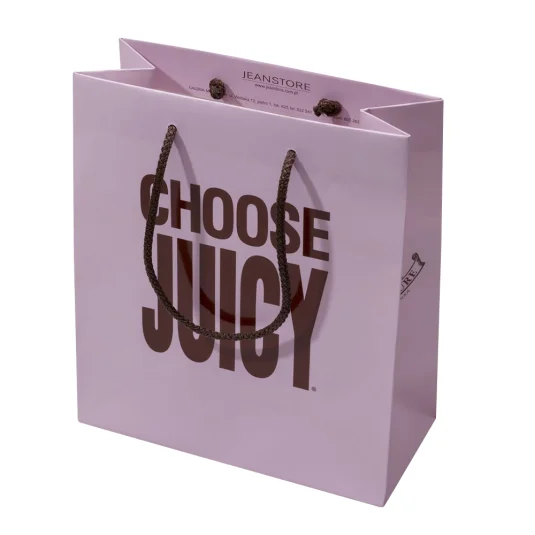 Klassische Boutique-Tragtasche aus Kraftpapier 200 gm2 (matte oder glänzende Oberfläche lieferbar), mit Textil-, Papier- oder Polyproplenkordeln erhältlich, verstärktem Randumschlag und eingelegtem Bodenkarton, erhältlich in verschiedenen Formaten, Mindestbestellmenge 500 Stück