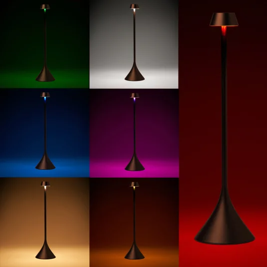 Elegante, endlos kuppel- und dimmbare Out- und Indoor Tischleuchte aus Aluminium, mit kalt- oder warmweissem Licht, 7 Lichtfarben sowie Touchfunktion, kabellos mit einer Betriebszeit von bis zu 10 Stunden, wasserdicht (IPX4), aufladbar per Induktion oder mit dem mitgelieferten USB-C-Kabel