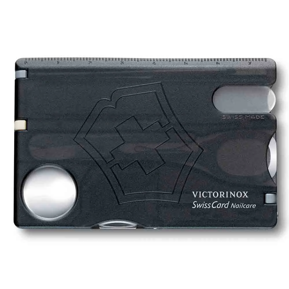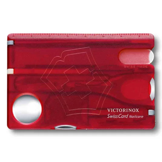 Die SwissCard Nailcare im praktischen Kreditkartenformat verblüfft mit 13 Funktionen, darunter eine Glasnagelfeile. Für das Kürzen der Fingernägel eignet sich die enthaltene Schere. Mit der Glasnagelfeile werden die Nägel anschliessend nachgeschliffen, um eine feine Kante zu erzielen.