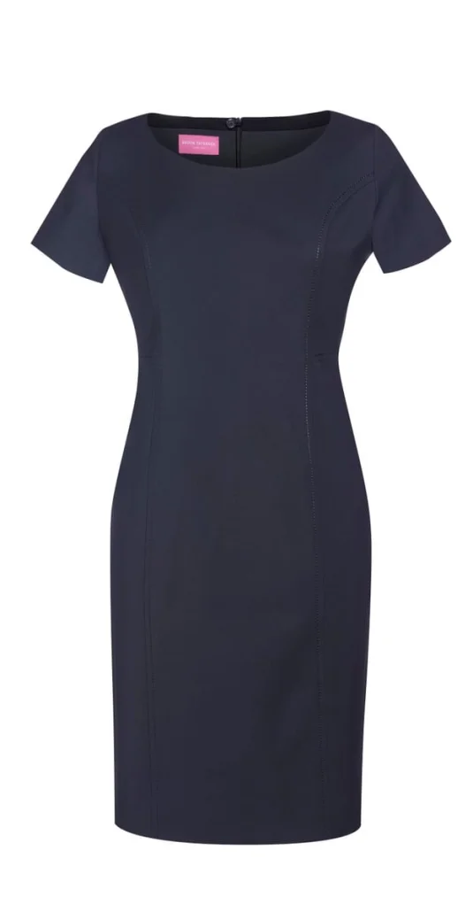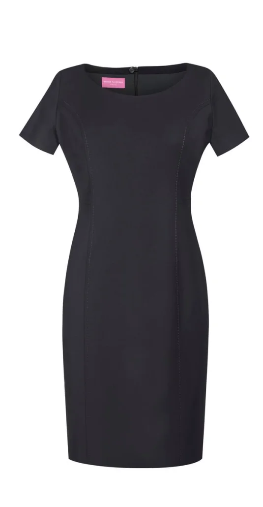 Schlichtes Etuikleid, kurzarm, Teilungsnähte, Rückenschlitz, Stretch-Futterstoff.