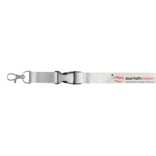 Trendige Badgeholder aus Polyester, mit Sicherheitsclip im Nacken, mit metall Verbindungsclip, Bandbreite wählbar (10-25 mm breit), mit Karabinerhaken, Schlüsselring oder Handyschlaufe, Design und Ausführung nach Wunsch, Mindestbestellmenge 250 Stück