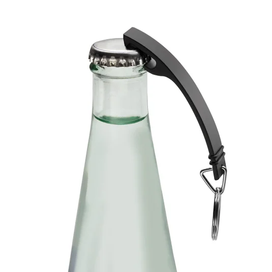 Schlüsselanhänger aus Aluminium mit integriertem Flaschenöffner, wird in Polybeutel geliefert