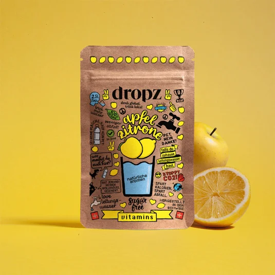Swiss Made dropz entfalten sich im Glas oder einer Flasche zu wahren Geschmacks und Vitaminwundern, und das ganz ohne Zucker oder Kalorien! Natürliche Aromen, vegan, 100% frei von Zuckerzusatz, entwickelt und produziert in der Schweiz. Eine Packung enthält 20 Dropz (1 Beutel ergibt ca. 0,5 l Wasser), je nach gewünschter Geschmacksintensität. Haltbarkeit ca. 6 Monate.
