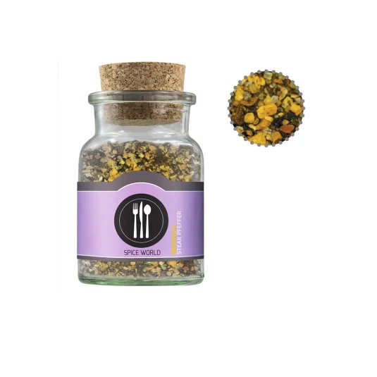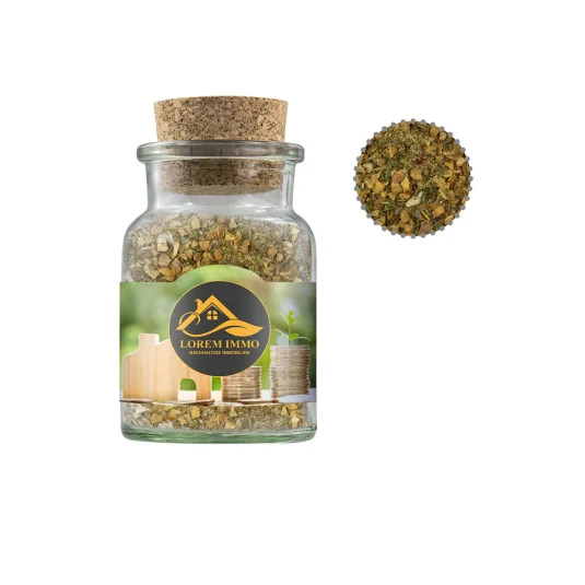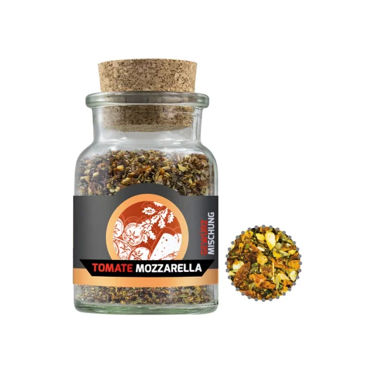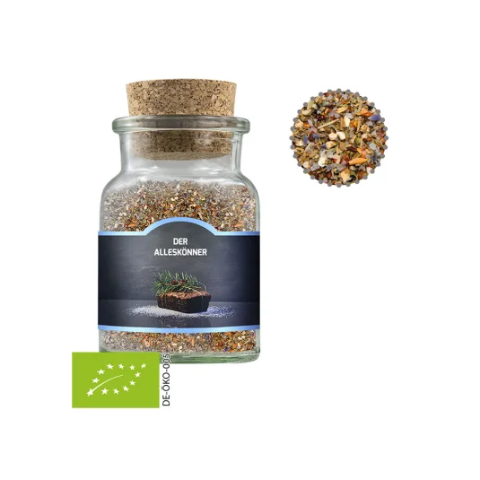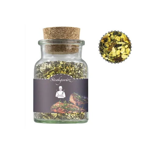 Gewürzmischung "Alleskönner" im dekorativen Korkenglas, auch erhältlich mit; Pizza-Kräuter, Steak-Pfeffer, Steakgewürz, Mediterraner Veggie Mix, Tomaten-Mozarella-Mix, BBQ Kräuter, Pfeffergeschrotet sowie Rühreigewürz, Haltbarkeit ca.