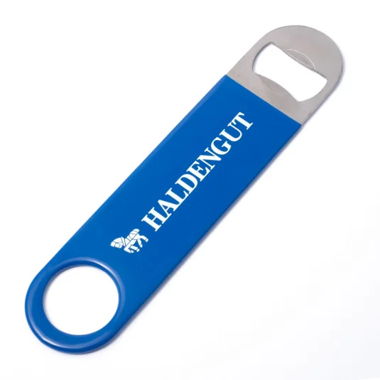 Praktischer Flaschenöffner für den professionellen Einsatz, aus Kunststoff und Edelstahl, Kunstoffteil kann in gewünschter Pantonefarbe eingefärbt werden