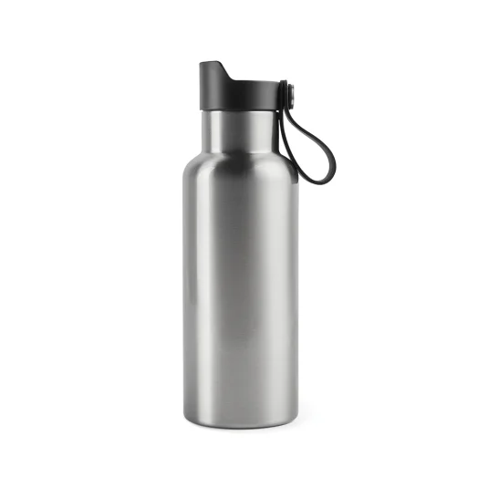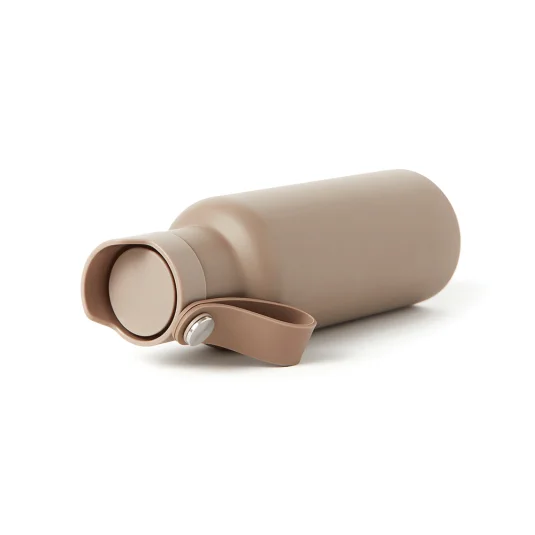 Stilvolle, auslaufsichere Thermoflasche aus doppelwandigem Edelstahl, hält Getränke bis zu 6 Stunden lang heiss oder kalt, einfaches Öffnen durch Knopfdruck, Inhalt 0,5 l