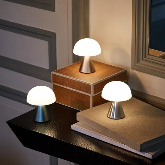 Stylische, induktive LED-Lampe aus Aluminium, mit 9 verschiedenen dimmbaren LED-Farbeinstellungen, einer Betriebszeit von 24 Stunden sowie einer Ladezeit von 2 Stunden, spritzfest (IPX4), wird inklusive USB-C-Kabel geliefert
