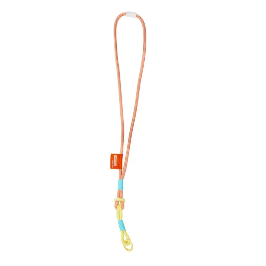 Stylischer Lanyard, bestehend aus einem 2-farbig gewobenen Tube-Band, einem kurzen 1- oder 2-farbig gewobenen Band mit 1-farbig gewachstem Faden sowie einem Sicherheitsclip und praktischen Schlüsselring, inklusive Label (gewebt oder bedruckt) mit Kundenlogo, Mindestbestellmenge 300 Stück