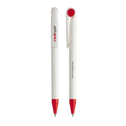 Swiss Made, Drehkugelschreiber mit Gehäuse aus rezykliertem und regeneriertem Kunststoff (farbig zu 50 %, schwarz oder weiss zu 100 %), mit breitem Clip und Kunststoff-Grossraummine (blau oder schwarz)