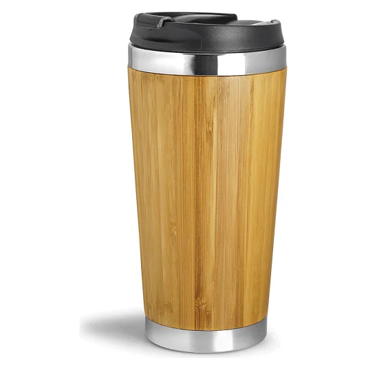 Trendiger, doppelwandiger Isolierbecher aus Edelstahl und Bambus, Inhalt: 0,41 l