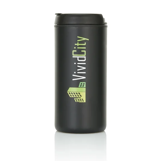 Trinkbecher aus rezykliertem Edelstahl (37%), mit Deckel aus Kunststoff, Inhalt 0,3 l