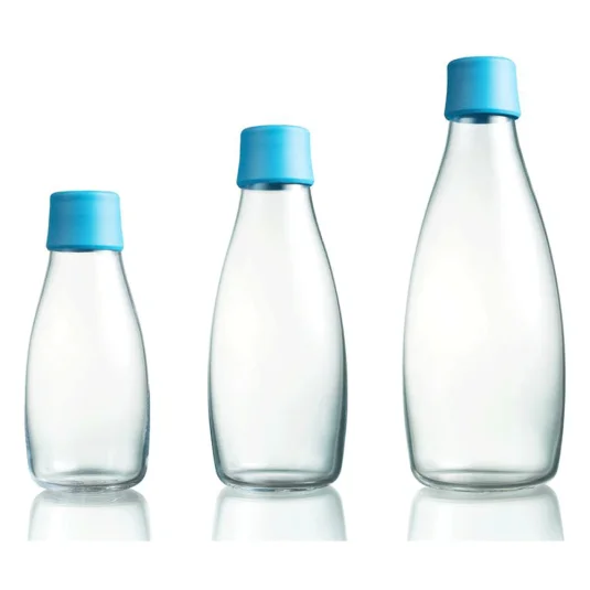 Die ökologische Trinkwasseridee aus Dänemark - innovativ, umweltfreundlich, praktisch! Immer wieder verwendbare Flasche fürs Büro oder Zuhause, aus Borosilikatglas, spülmaschinenfest, mit Deckel aus Silikon, Inhalt 0,5 l