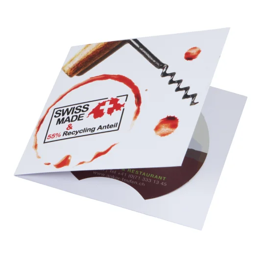 Swiss Made, Weinausgussfolie aus rezyklierter (55 %) Polyesterfolie