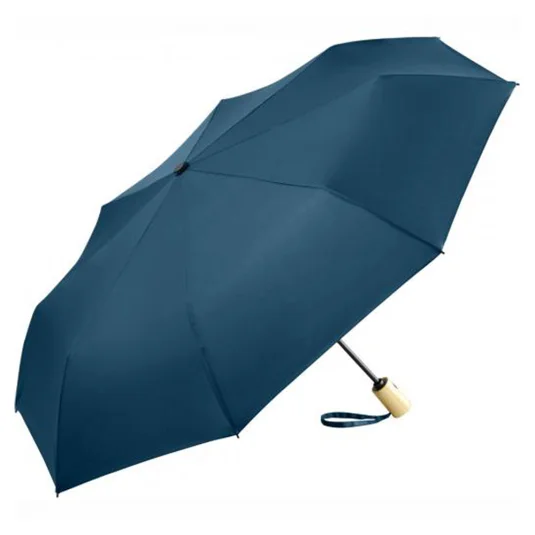 Umweltfreundlicher Doppelautomatik-Mini-Taschenschirm (AOC) zum schnellen Öffnen und Schliessen, mit wassersparend gefärbtem waterSAVE® Bezugsmaterial aus rezyklierten Kunststoffen, komfortablem Bambusgriff und hochwertigem Windproof-System für maximale Gestell-Flexibilität bei starkem Wind