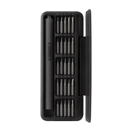 Elektrisches Schraubenzieher-Kit aus Aluminium, mit 25 Präzisionsbits aus S2-Stahl und aufladbarem Akku mit USB-C, bedienbar im automatischen oder manuellen Modus