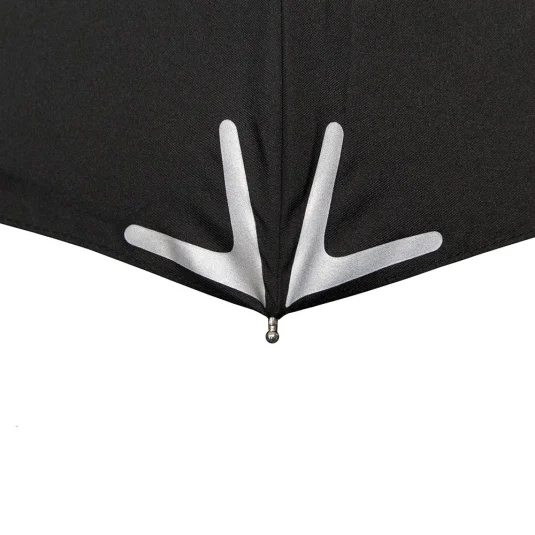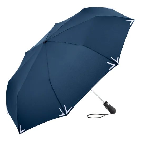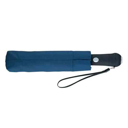 Praktischer, leichter Taschenschirm mit Polyesterbespannung und hochwertigem Metallgestell, an den Keilenden ausgestattet mit reflektierendem 3M™ Reflective Material, mit schwenkbarem LED-Leuchtkopf und Druckknopf für automatisches Öffnen, verpackt in Hülle mit praktischem Verschlussknopf
