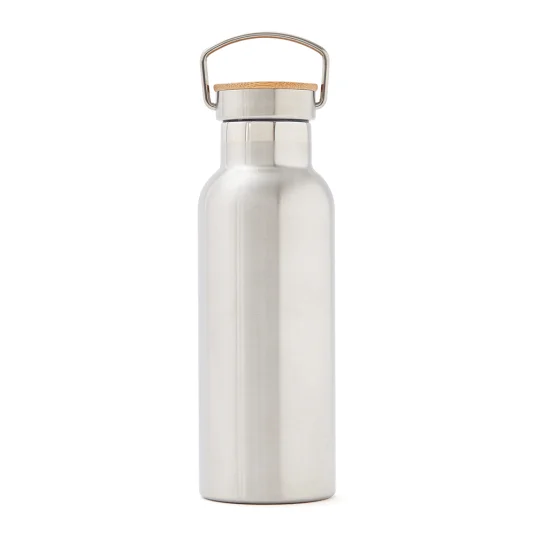 Edle Thermoflasche aus 18/8 rostfreiem Stahl, mit Vakuumisolierung welche Wasser bis zu 18 Stunden eiskalt - und warme Getränke bis zu 6 Stunden warm hält, geruchsneutral und auslaufsicher, Inhalt 0,5 l