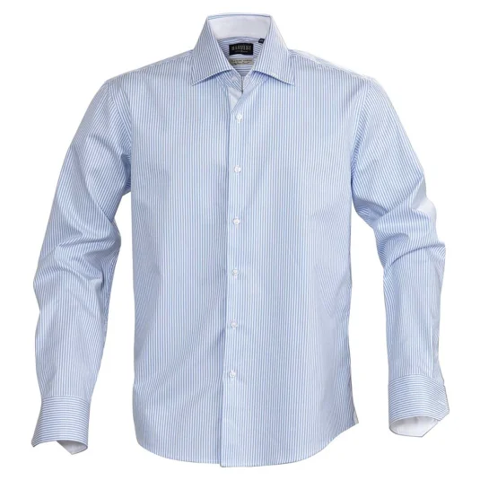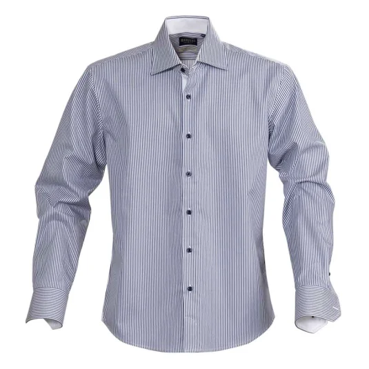Klassisches Hemd aus gekämmter Baumwolle mit Easy-Care-Behandlung. Nähte, Kragen und Ärmel sind verstärkt. Streifenmuster mit Kontrastfarbe unter dem Kragen, an der Knopfleiste und am Ärmel.