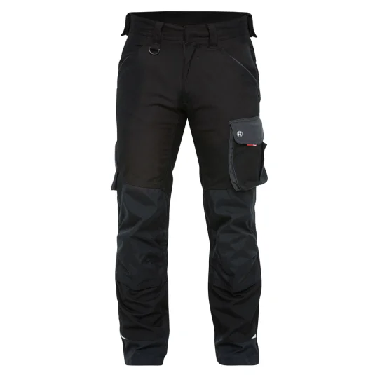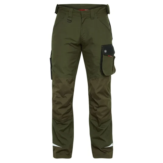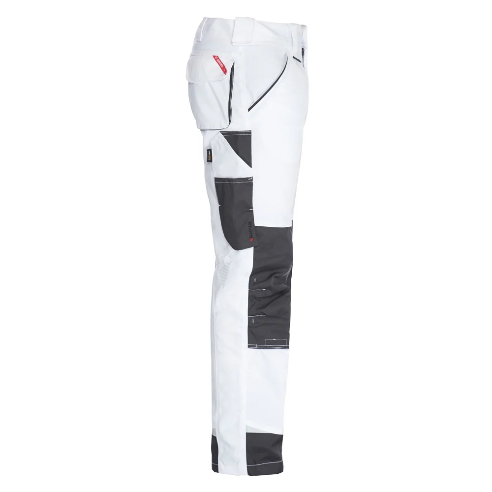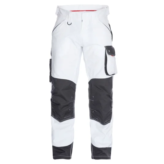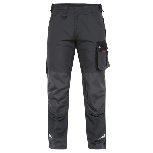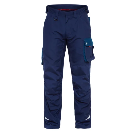 Arbeitshose mit ergonimisch geformten Knie, vielen funktionellen Taschen, u. a. Schenkeltasche mit Reissverschluss, zwei Einstellmöglichkeiten für Knieschutzkissen, Knie und unterer Saum mit Cordura verstärkt, Schenkeltasche mit freihängendem Boden und Zollstocktasche, Schlaufe mit D-Ring, für Industrieäsche geeignet, in kurzer- und extra Schrittlänge erhältlich.