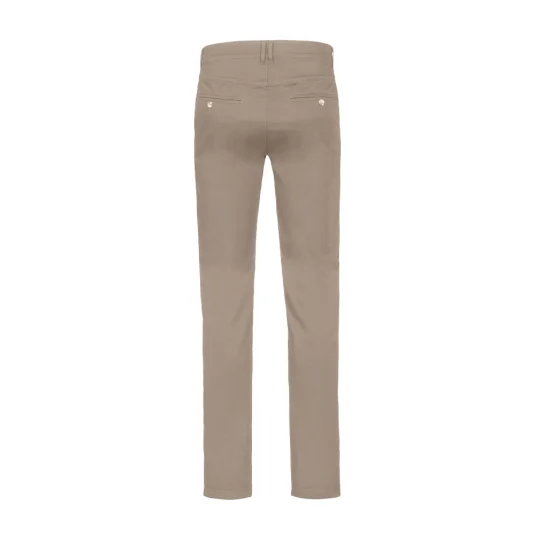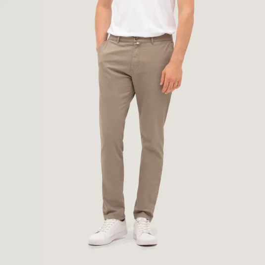 Sportlich, leger geschnittene Stretch-Chinohose mit zwei Eingrifftaschen, zwei Paspelgesäßtaschen mit Knopf, Gürtelschlaufen und Reissverschluss von YKK®.