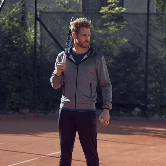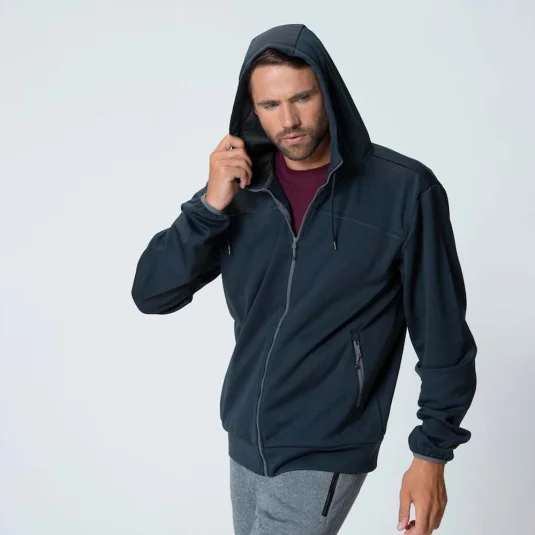Eine schöne Kapuzenjacke aus weichem, elastischem und komfortablem Polyester.