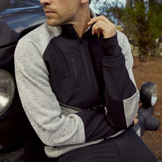 Eine warme, leicht zu tragende Strickfleecejacke mit Softshell Einsätzen.