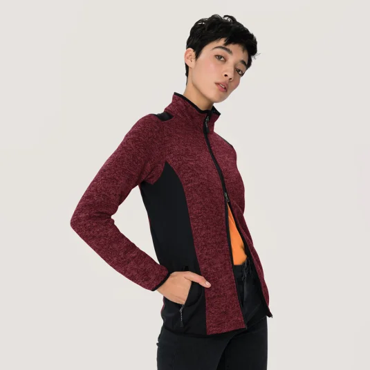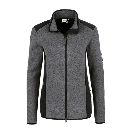 Sportliche Strickfleecejacke mit kontrastfarbigen Einsätzen an den Seiten und Schultern, Teilungsnähten auf Vorder- und Rückenteil für perfekte Passform, hochwertigem, kontrastfarbigem 2-Wege-Frontreissverschluss, seitlichen Reissverschlusstaschen, elastischen Saum- und Ärmelbündchen, Reissverschluss-Ärmeltasche am linken Ärmel, Nackenband und Aufhängeband im Nacken.