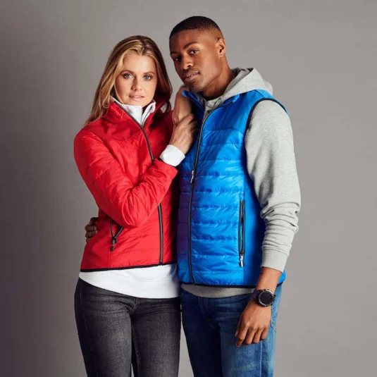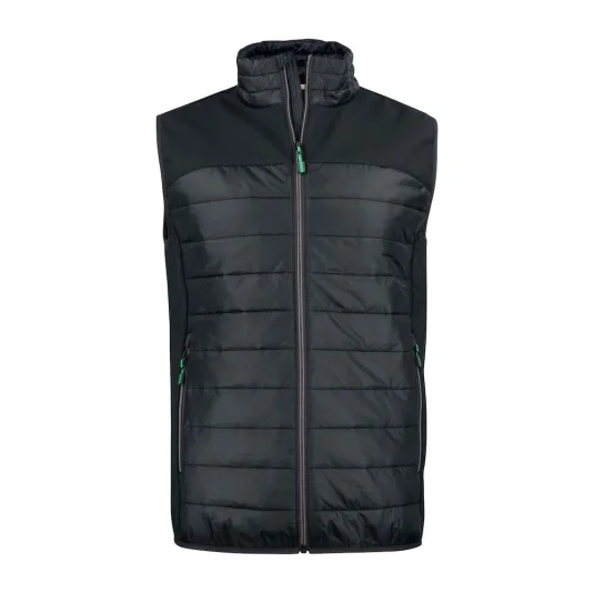 Wattiertes Gilet gesteppt und mit Sofshell Einsätzen über der Schulter und an den Seiten.