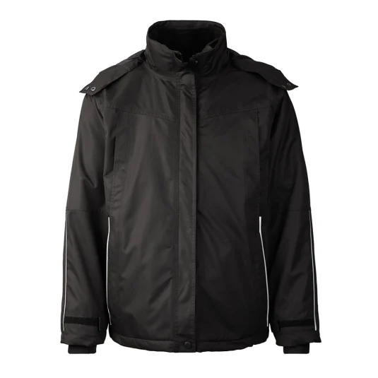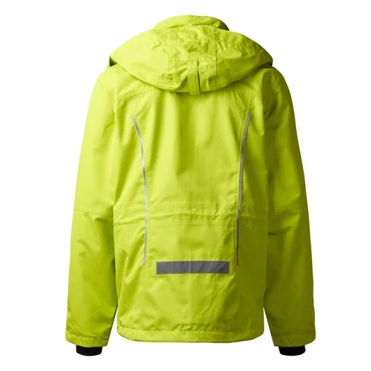 Hochwertige Laminatjacke mit BIONIC-FINISH®ECO, einer dauerhaften PFC-freien und wasserabweisenden Ausrüstung. Mit komplett getapten Nähten und abnehmbarer Kapuze. Weitenverstellung an Taille und Saum- und Ärmelabschluss und 2-Wege-Reissverschluss in der vorderen Mitte. Zwei seitliche Eingriffs- und Innentasche mit Reissverschluss. Reflektierende Paspel an Vorder- und Rückteil sowie am Ärmel sorgen für eine bessere Sichtbarkeit.