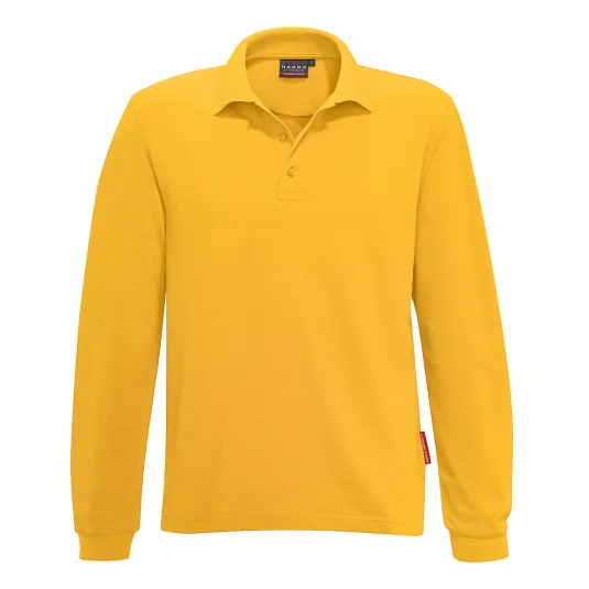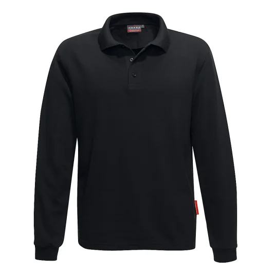 Leistungsfähiges und funktionelles langarm Poloshirt. Pflegeleicht durch den Anteil an Polyester. 3-Loch Knopfleiste mit Knöpfen ton-in-ton. Leasing geeignet. Nackenband, Seitenschlitze. Flaglabel in der linken Seitennaht. Hakro Weblabel im Nacken. Einlaufvorbehandelt