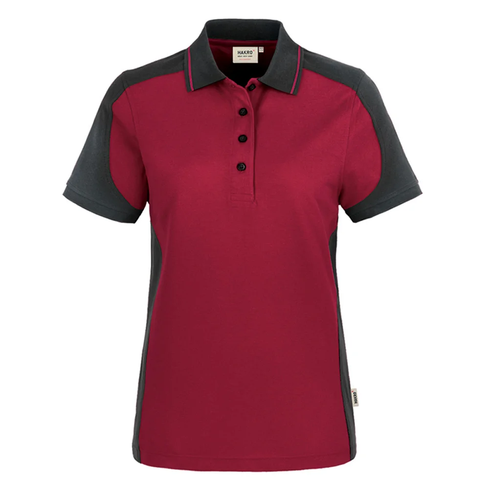 Besonders leistungsfähiges und funktionelles Piqué- Poloshirt aus weichem, durch den Polyester-Anteil besonders pflegeleichtem und strapazierfähigem HAKRO®- Performance-Materialmix mikralinar® mit kontrastfarbigen Einsätzen an den Seiten, Schultern und Ärmeln, kontrastfarbiger Polokragen mit Streifen, kontrastfarbige Ärmelbündchen und Nackenband, zusätzlich mit doppelt geriegelten Seitenschlitzen sowie einer modisch verlängerten 4-Loch-Knopfleiste ausgestattet, ein Leasingkoller zur einfachen Kennzeichnung und zwei praktische Aufhängebänder im Saum, für die problemlose Bearbeitung in der gewerblichen Wäscherei