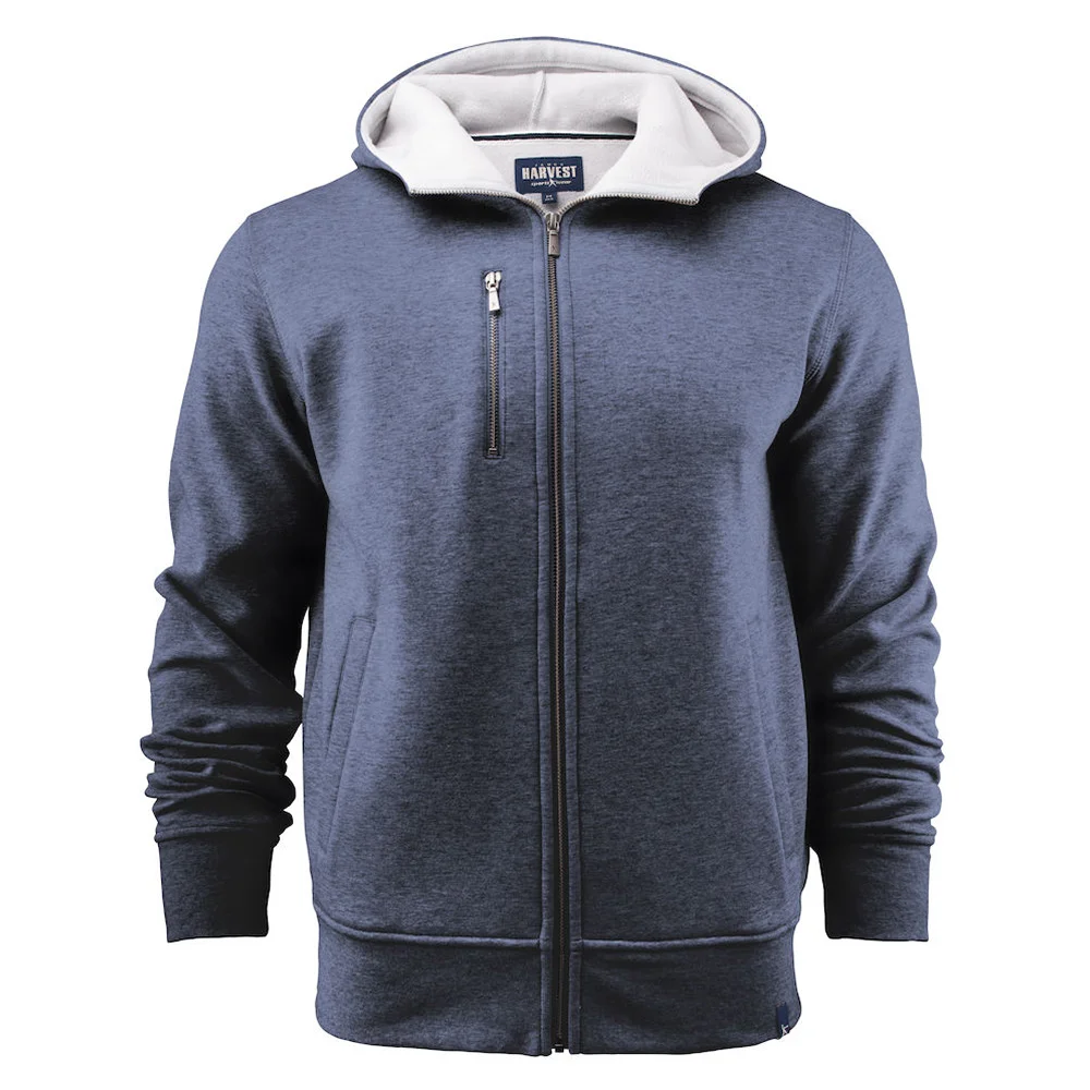 Kapuzenjacke aus Doubleface-Material, Baumwolle aussen und Fleece innen, Metallreissverschlüsse vorne und an der Brusttasche, Rippenbündchen am Bund und an den Ärmeln.