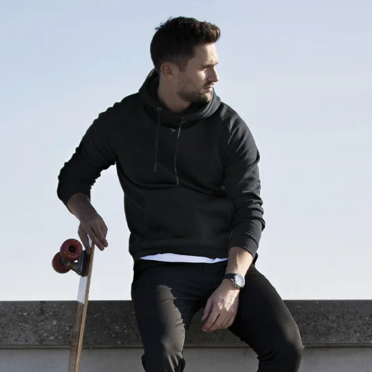 Trendy, hip und cool ist der Hoodie Fresno. Ein bequemer und lässiger Kapuzenpullover, gefertigt aus einem weichen und flauschigen Baumwollmischgewebe. Langstaplige, gekämmte Baumwolle sorgt für langlebige Qualität und verfügt über funktionelle Details, wie die geteilte Kängurutasche, mit dem Reissverschlussfach auf der rechten Seite und einer doppellagigen Kapuze.