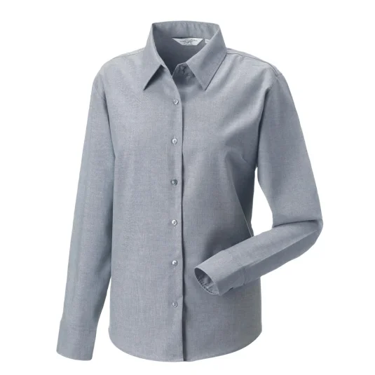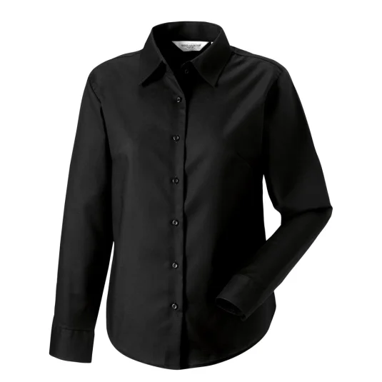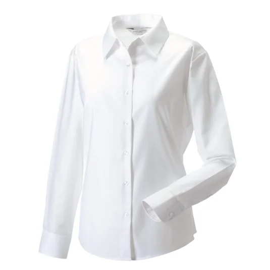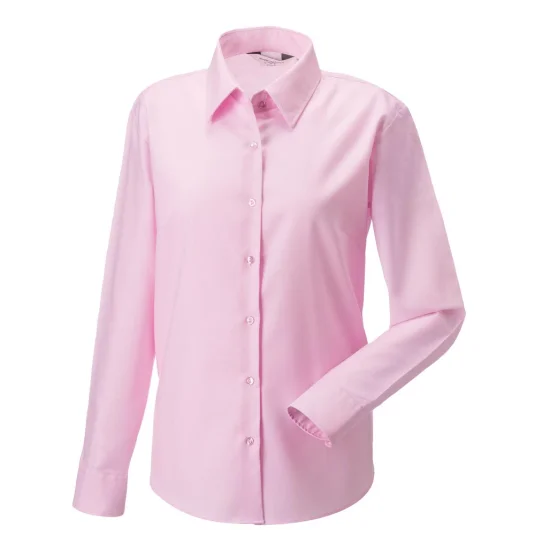 Langärmlige Damenbluse mit klassischem Kragen, Abnäher auf Brusthöhe und im Rücken für perfekte Passform, mit zwei Knöpfen verstellbare Manschette, abgerundeter Saum