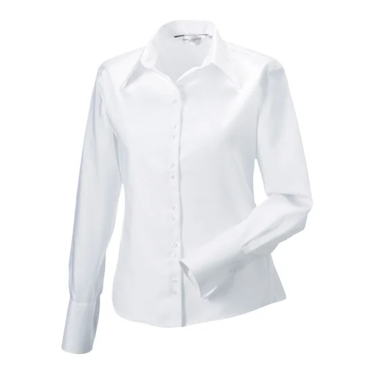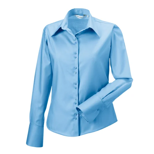 Langärmlige Damenbluse aus bügelfreiem Stoff, modisch geschnittener Kragen, Doppelknopf-Verschluss, tailliert