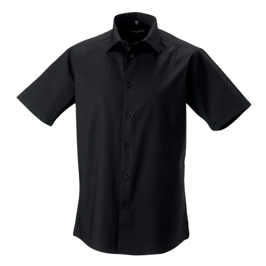 Kurzärmliges Herrenhemd, halb ausgestellter Kragen, abgerundeter Bund