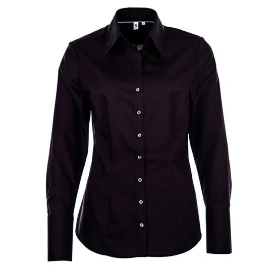 Langarm-Bluse mit Kent-Kragen und Doppelnähten, Ton-in-Ton-Knöpfen, figurbetontem Schnitt, absolut bügelfrei und waschbar bis 40 Grad Celsius