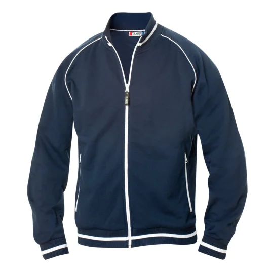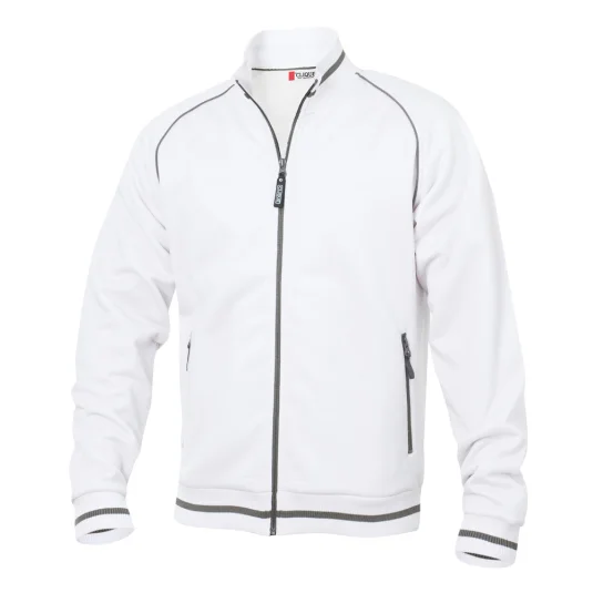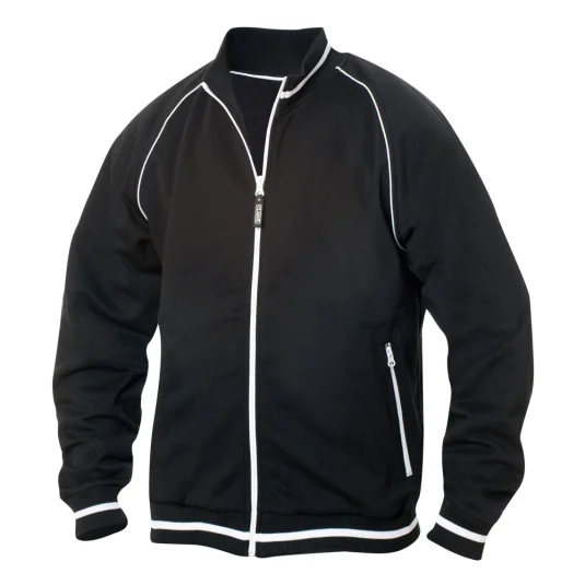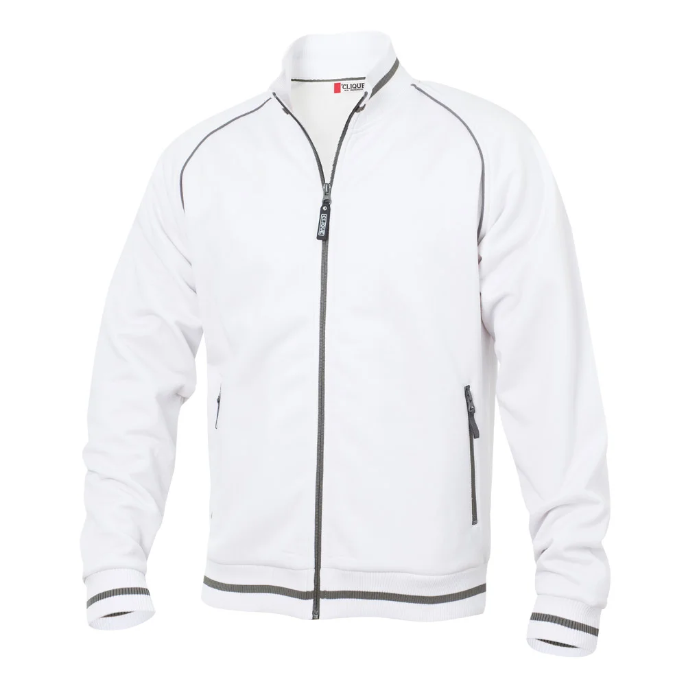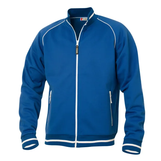 Unisex Jacke mit Strukturstrick, angerauter Innenseite, Kontraststreifen am Kragen, dem Bund und den Ärmeln, 2 Seitentaschen mit Reissverschluss in Kontrastfarbe