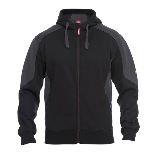 Sweat Cardigan mit weichem Fleece auf der Innenseite, grosse Einschubtaschen mit Reissverschluss, Strickbündchen an Bund und Ärmel, Kapuze mit Kordel, Refelxapplikation auf den Schultern.