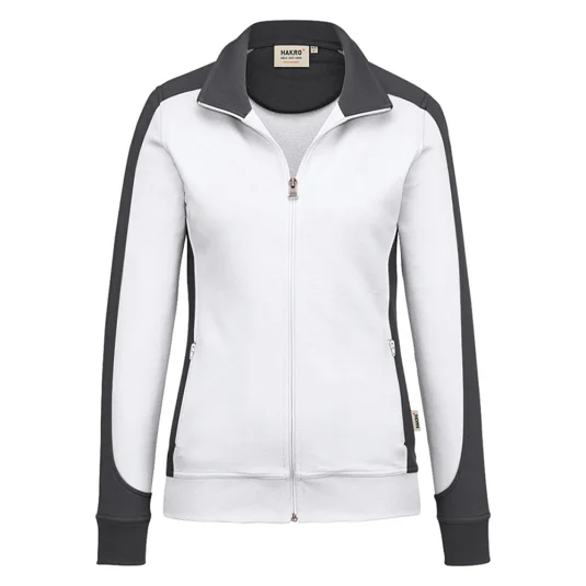 Besonders strapazierfähige Sweatjacke mit kontrastfarbigen Einsätzen an den Seiten, den Schultern und Ärmeln, formstabilen Bündchen mit Lycra-Anteil, nicht angerauhter Innenseite, (French-Terry), Nackenband, hochwertigem Frontreissverschluss und seitlichen Einschubtaschen mit Reissverschluss.