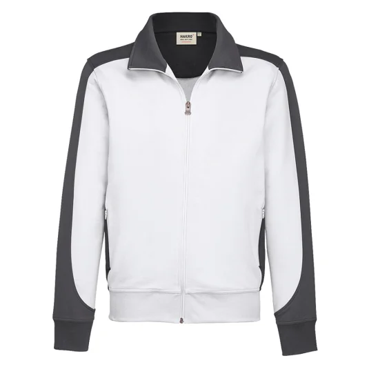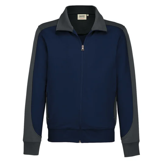Besonders strapazierfähige Sweatjacke mit kontrastfarbigen Einsätzen an den Seiten, den Schultern und Ärmeln, formstabilen Bündchen mit Lycra-Anteil, nicht angerauhter Innenseite, (French-Terry), Nackenband, hochwertigem Frontreissverschluss und seitlichen Einschubtaschen mit Reissverschluss.