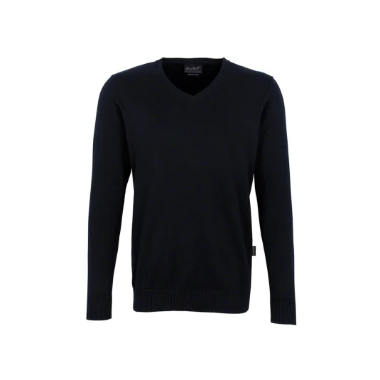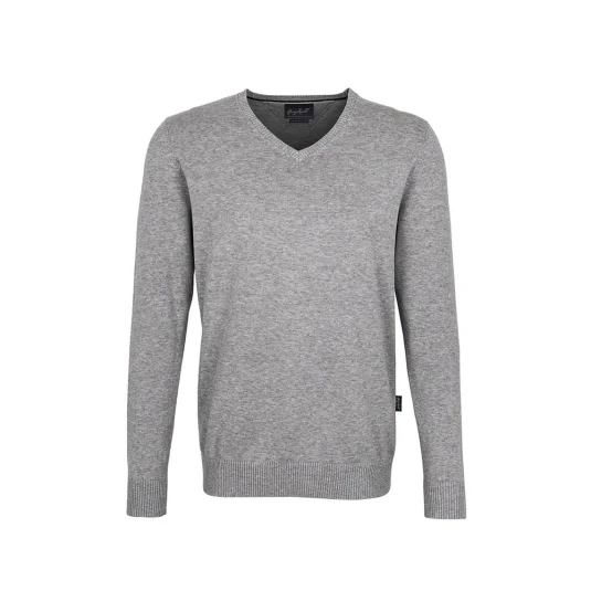 Klassischer Pullover aus feiner, mittelschwerer und gekämmter Baumwolle. Das langstapelige Baumwollgarn garantiert einen weichen Griff, ein gleichmäßiges Maschenbild und angenehmen Tragekomfort. Gefertigt ist dieser kombistarke Feinstrickpullover in klassischer Schnittführung. Der eingestrickte, dunkelblaue Kontraststreifen am Halsausschnitt und die gerippten Bündchen am V-Ausschnitt, Ärmelausschnitt und Saum betonen die hochwertige Ausführung.