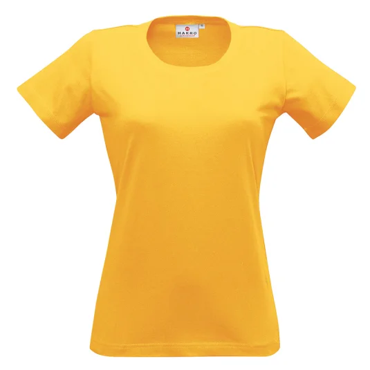 Klassisches Damen T-Shirt mit Rundhals Ausschnitt, modisch schmales Halsbündchen. Dekorative Flatlock Nähte am Arm und Bund. Einlaufvorbehandelt