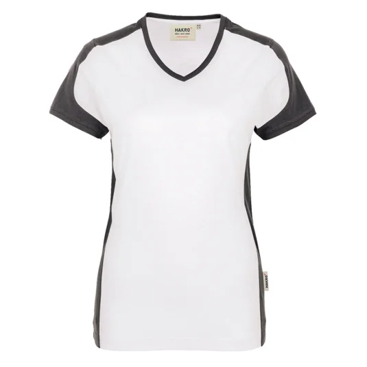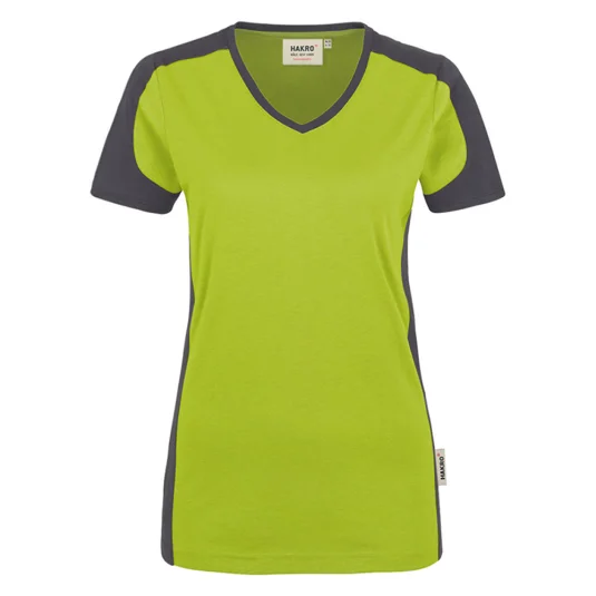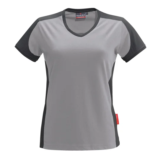Damen V-Neck T-Shirt, besonders leistungsfähiges und funktionelles Shirt aus weichem, durch den Polyester-Anteil besonders pflegeleichtem und strapazierfähigem Materialmix.