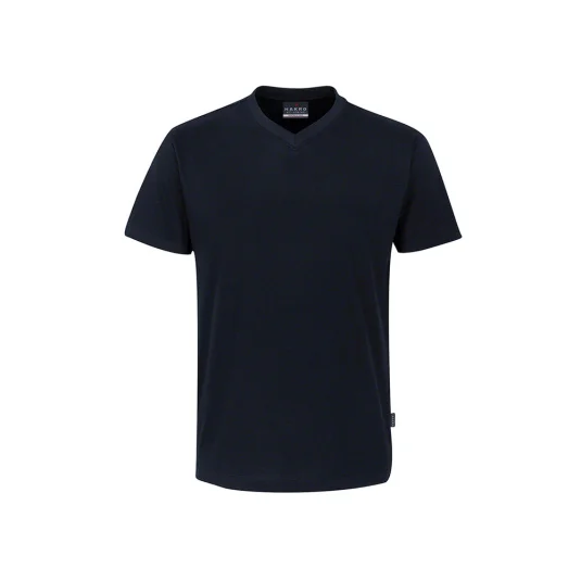 Leger geschnittenes T-Shirt aus feinem, mittelschwerem Single Jersey aus ringgesponnener und gekämmter Baumwolle, mit klassischem V-förmigem Halsausschnitt.
