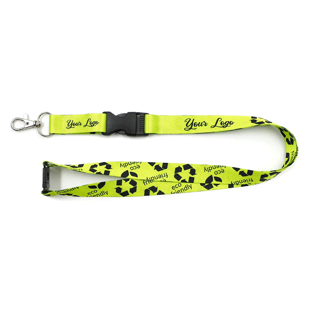 Made in Europe - Nachhaltiger Lanyard hergestellt aus rezyklierten PET-Flaschen, mit Verbindungsclip, Sicherheitsverschluss und Karabinerhaken, Mindestbestellmenge 100 Stück