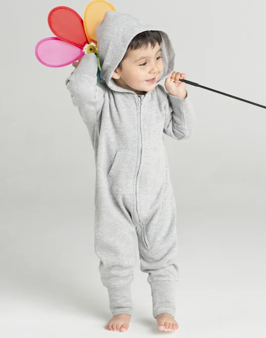 Baby All-in-One mit sehr weicher und flauschiger Innenseite, einfacher Kapuze, Sattel im Nacken, Nackenband, Zip vom Hals bis zum Unterschenkel für einfaches Anziehen und Veredeln, Kängurutasche, Breite Rippstrickbündchen an Arm- und Beinabschluss, leicht umzuetikettieren.
