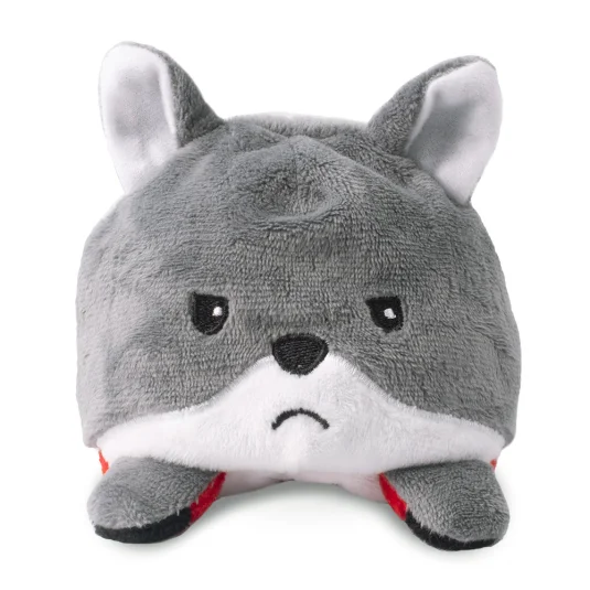 Mit den kuschelig weichen Plüschfiguren kann die Stimmung ausgedrückt werden - die Figuren haben eine lachende und eine traurige Seite, Mindestbestellmenge 1200 Stück